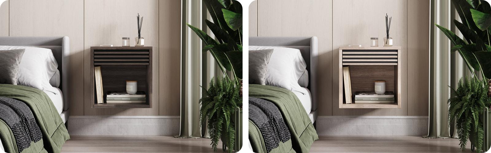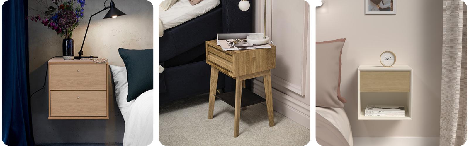 Et væghængt sengebord kan fås både med og uden skuffer, alt efter hvad du har brug for.