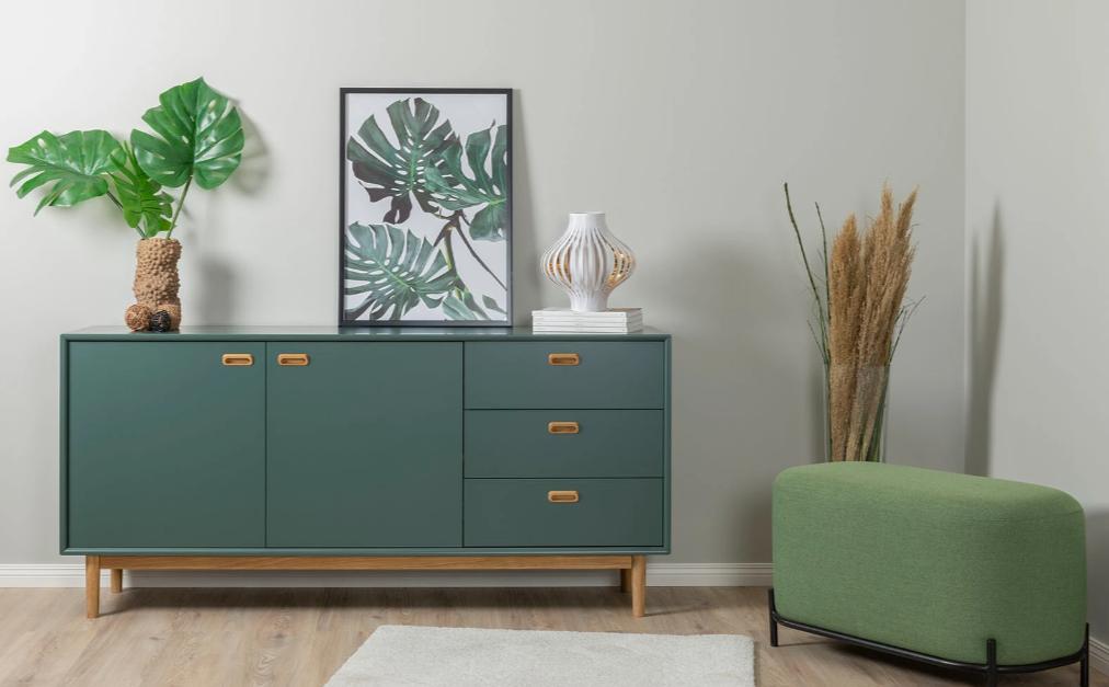 Se blandt andet Harry puf i farven grøn mikset med Svea skænk i farven Forest, pyntet med tilbehør som giver et unikt sammenspil.